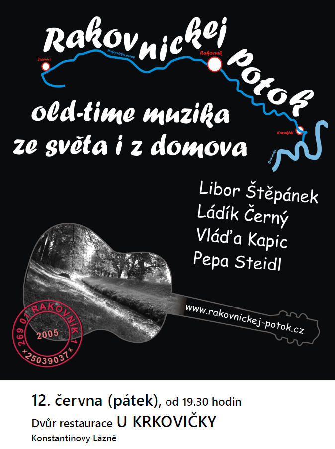 Koncerty 12. června 2020 RAKOVNICKEJ POTOK U Krkovičky – Konstantinovy Lázně 1.6.2020 kapvla 12. června (pátek) od 19:30 hraju s Rakovnickým potokem na dvoře restaurace U Krkovičky v Konstantinových Lázních